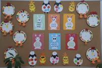 Deti zhotovili krásne papierové výrobky: kraslice, sliepočky a veľkonočných zajacov.